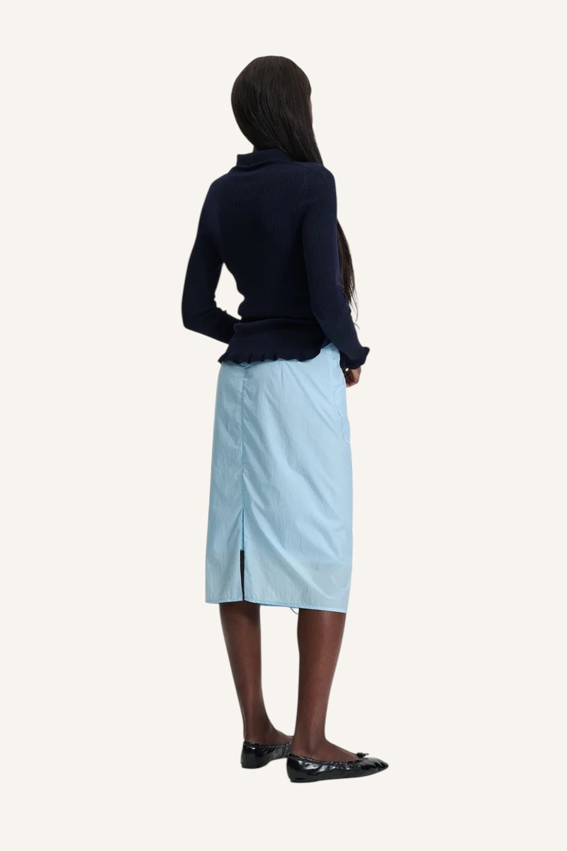 The Allegra skirt from Cecilie Bahnsen is an effortlessly chic piece featuring a knee-length pencil design made from recycled shiki light taffeta. It showcases two large embroidered flower patches on a fully lined base and is finished with a discreet back zipper for a seamless fit. Style it with the Alora top for an effortlessly elegant look.