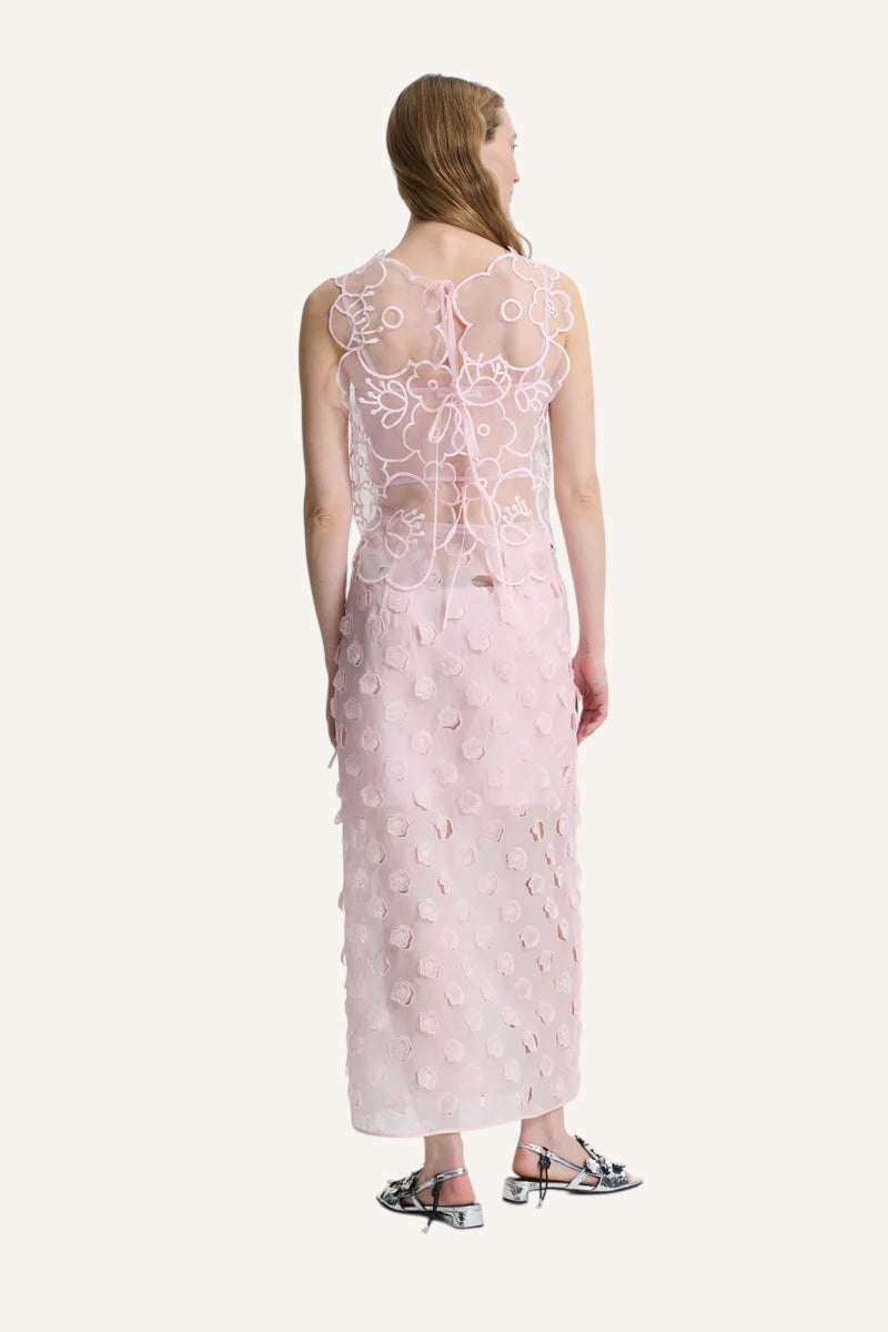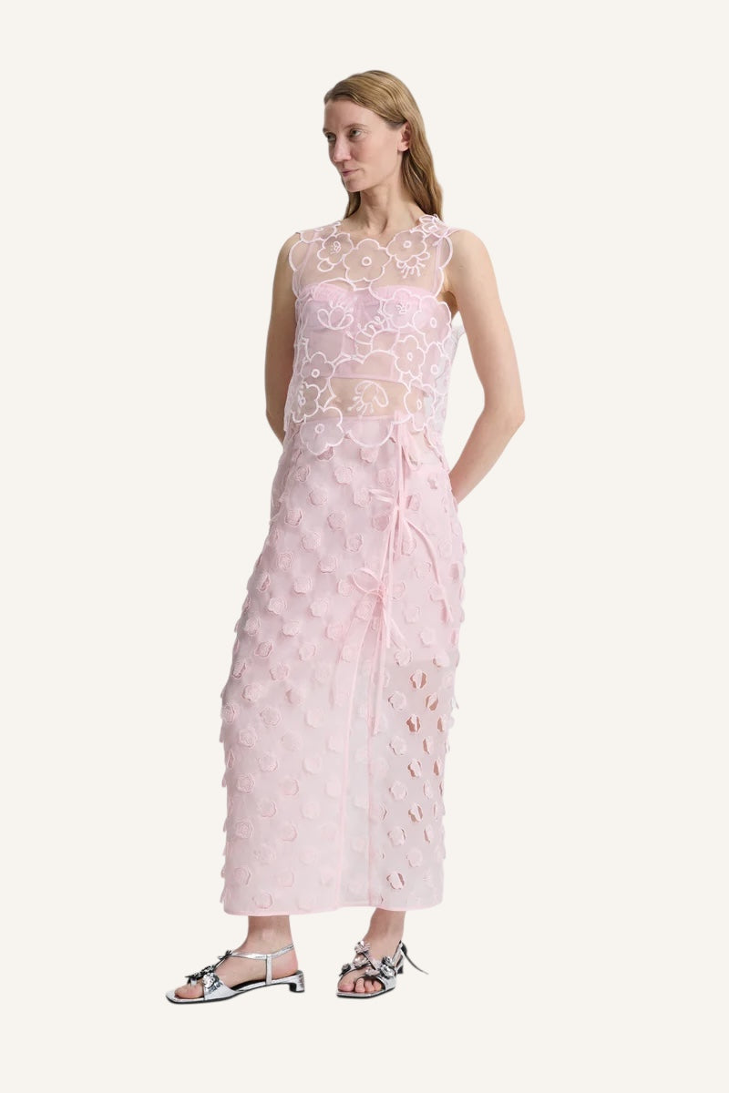 Blake top from Cecilie Bahnsen is designed with semi-sheer delicate florals embroidered from liquid Myrtia, tied with ribbons at the back, allowing you to choose how fitted it should be. Can be styled on its own but is also the perfect top for layering.
