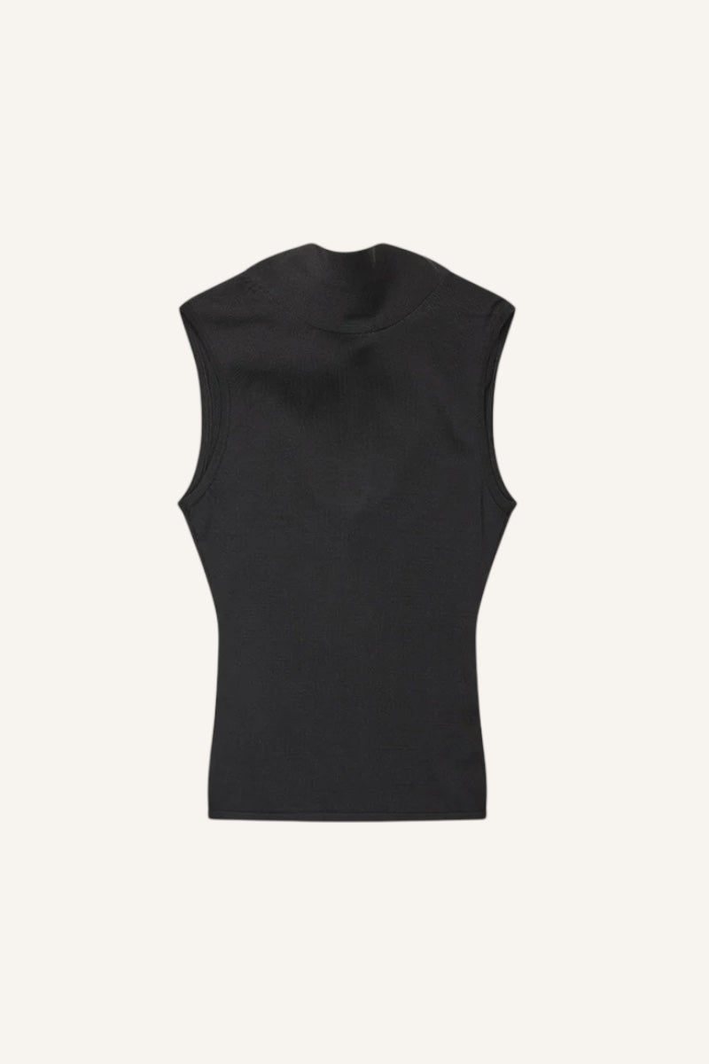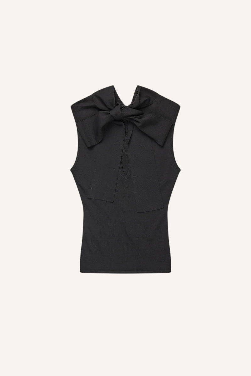 Vera top from Kernemilk in black featuring a tie-neck detail and open back or front.